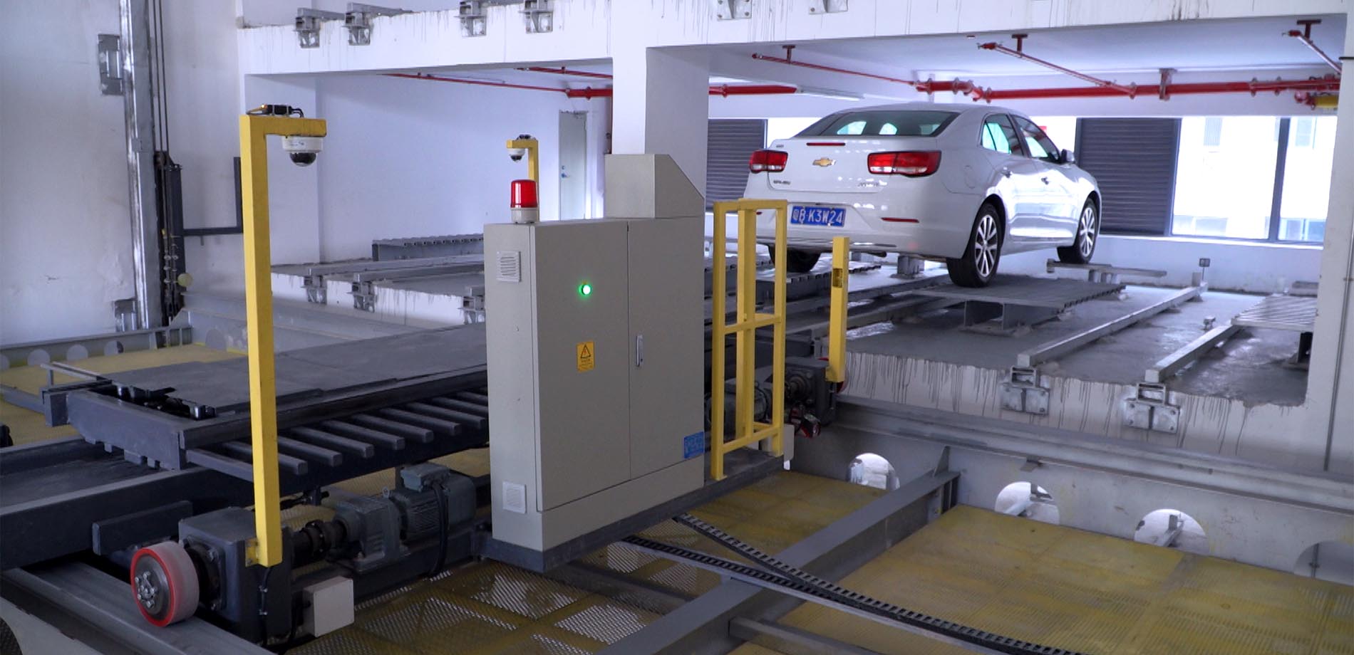 本項(xiàng)目為垂直升降類梳齒式立體車庫(kù),一共9層,車庫(kù)配備5套升降機(jī),5套平移車及搬運(yùn)器,10個(gè)出入口,可以滿足周邊的停車需求。